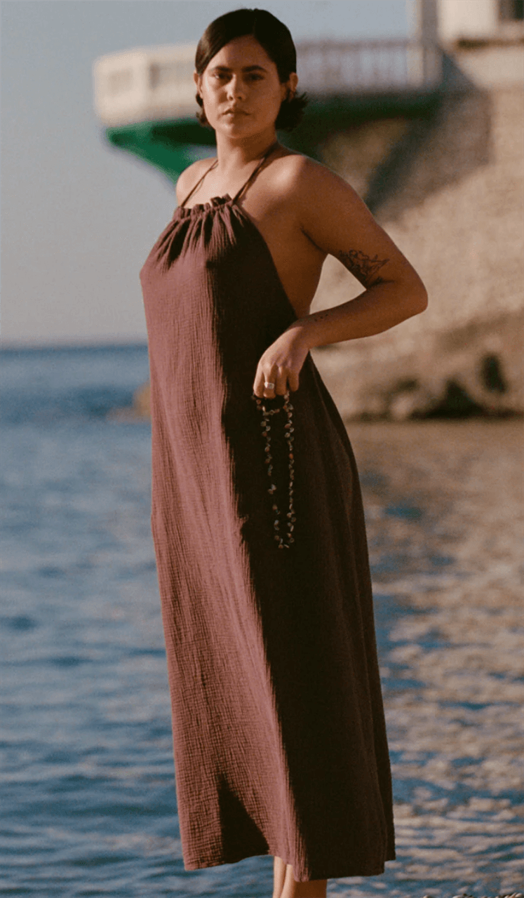 serendipity - double gauze dress, fig