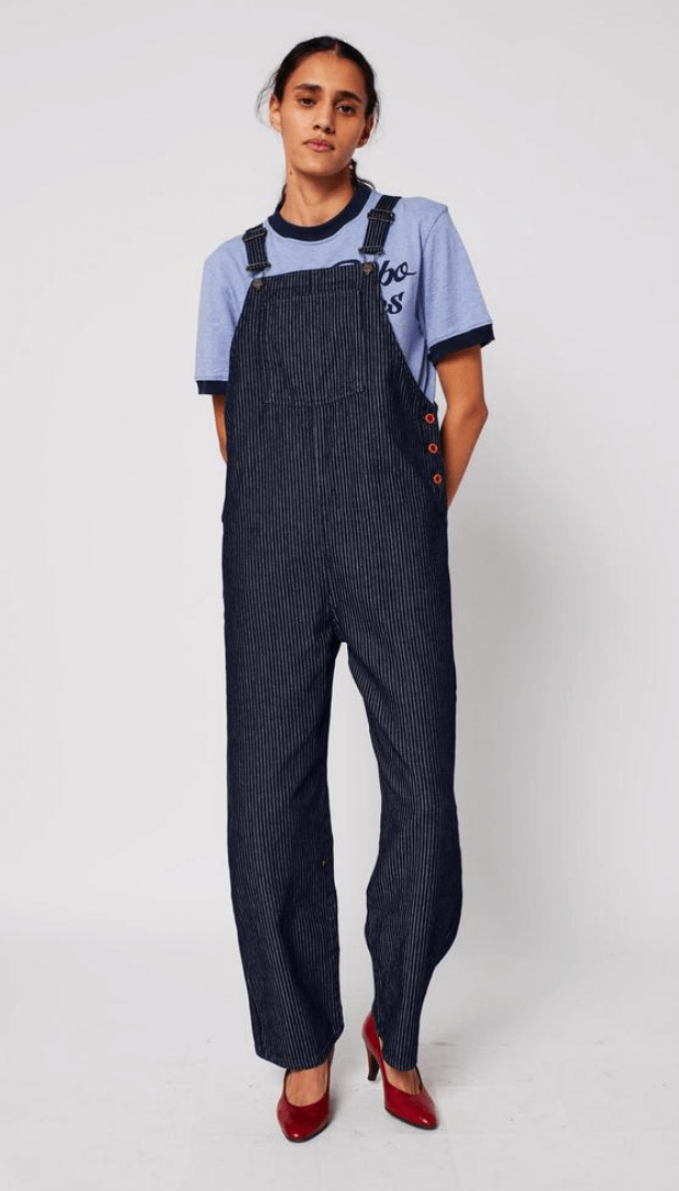 bobo choses adults - denim stripe dungaree, navy blue