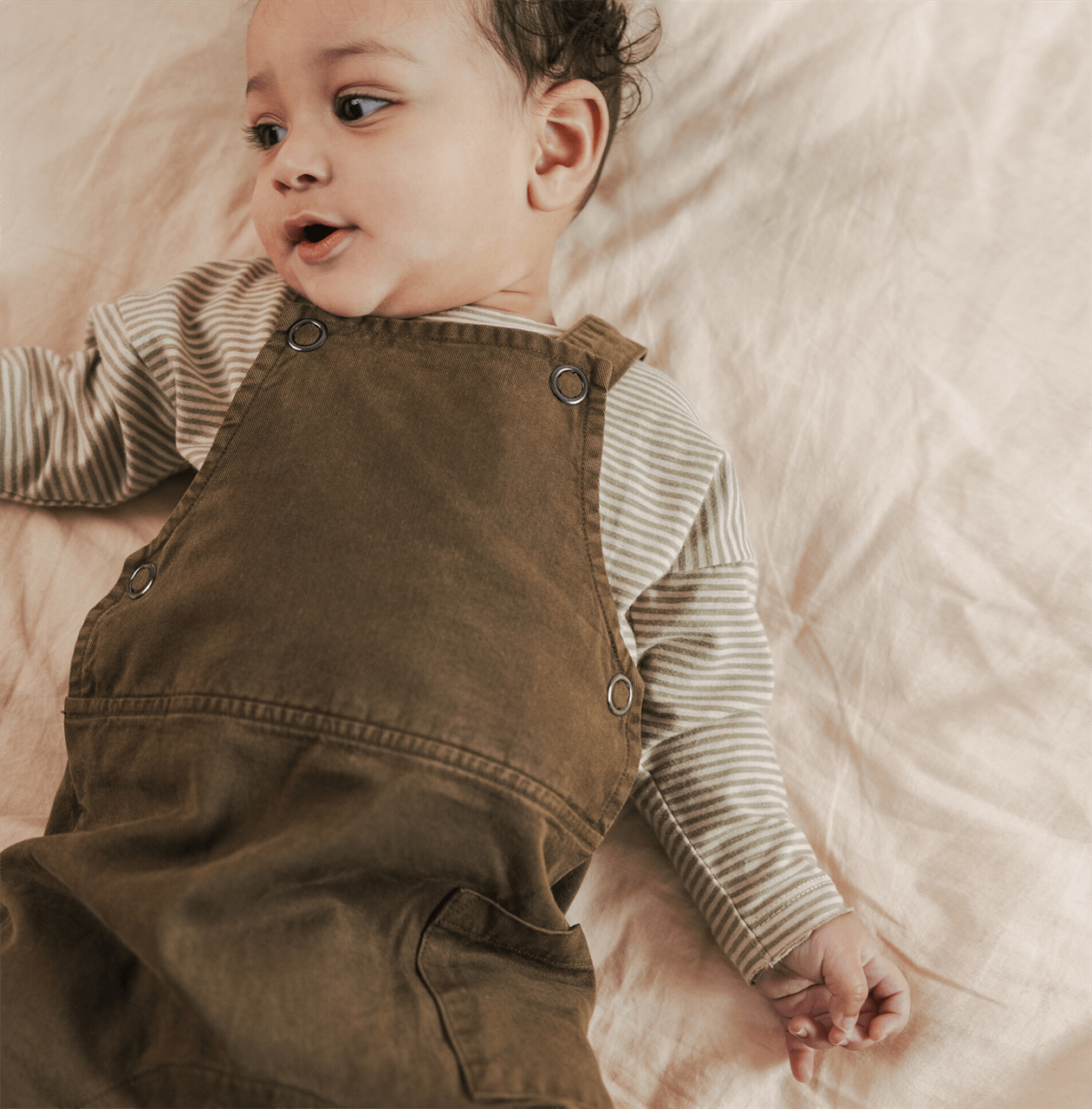 phil&phae - twill baby dungarees, dark moss
