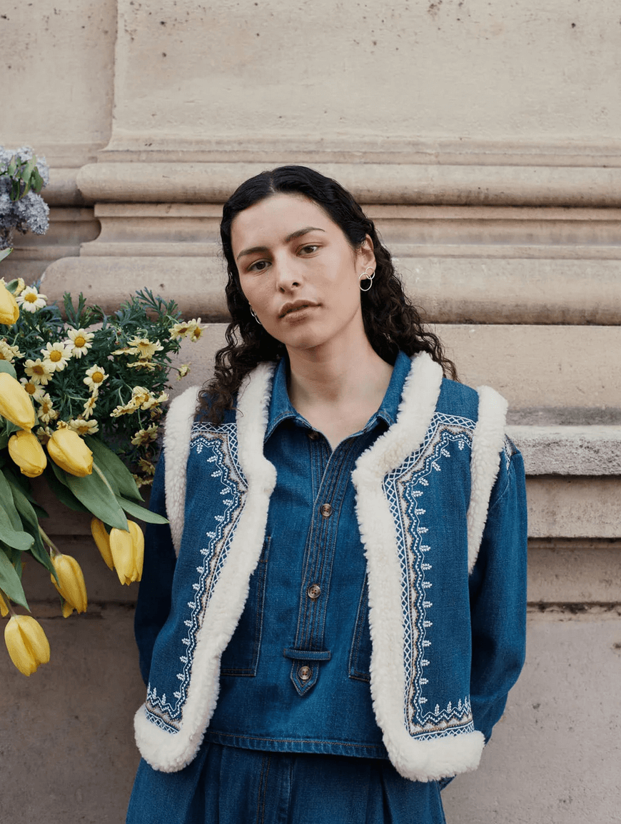 louise misha - reversible vest figara, stone blue