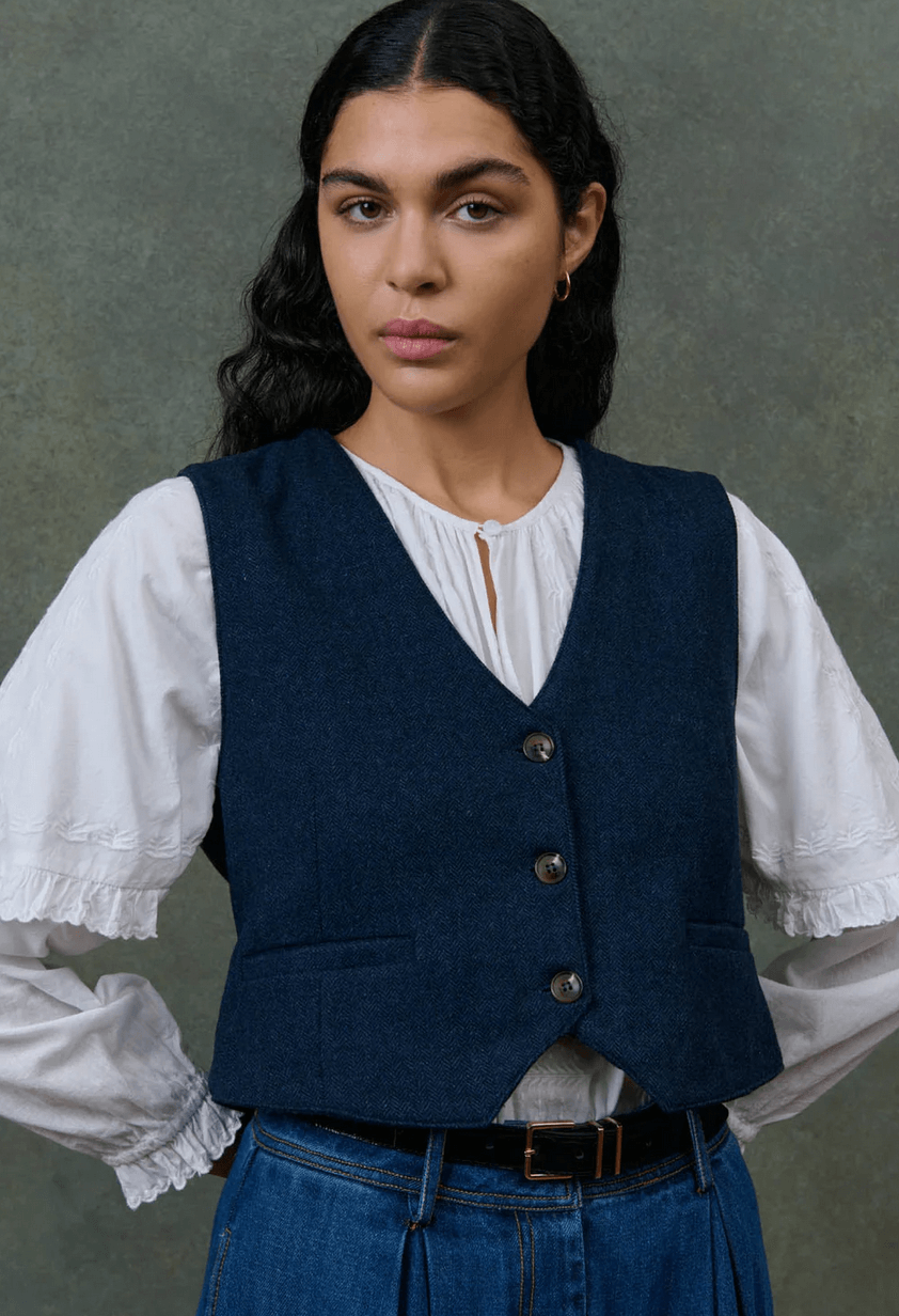 louise misha - waistcoat franckie, navy dusk chevron